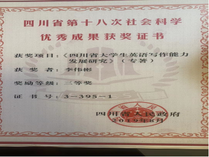 四川省第十八次社会科学优秀成果获奖证书