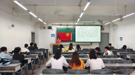 团课伊始,何莉娅向同学展示了以“青春向党,班团结合”为主题的报告,向各位团员及入团积极分子介绍了团章的由来和要求,并指出:作为新时代老员工,我们要摆正人生价值观,将青春向党才能更好地实现自己的人生价值,成为祖国的栋梁之材。之后,何莉娅依次从不同的方面为同学们讲解如何摆正人生价值观,同学们纷纷表示感受良多且受益匪浅。最后,何莉娅播放了一段“青春向党榜样”的视频,并进行了简短的总结,同时告诫同学们要努力为祖国做出贡献。