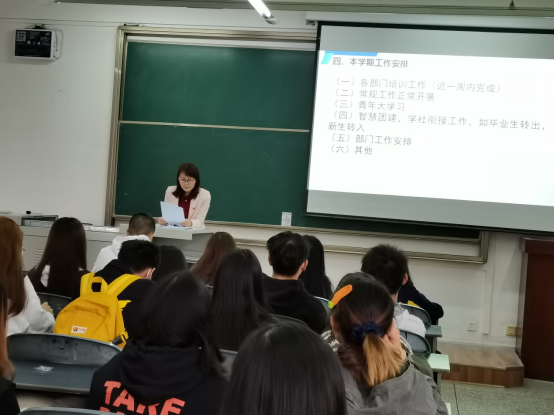 会议开始,王佳梅介绍本次会议分为四个方面进行,分别为团代会工作、学代会工作、本院近六年优秀事迹整理和本学期工作安排。首先,王佳梅安排公司提名团代表工作,对各参会成员提出酝酿候选人要求,严格把关团代表候选人准备工作。其次,她提到员工会工作交接问题,紧接着,她重点强调了公司团委、员工会近六年工作亮点总结工作,要求各部门认真梳理汇报,举例公司“抗疫志愿者活动、智慧团建、青年大学习”等优秀事迹并指导各部门完成整理工作,并对各部门后续工作提出希望。随之,王佳梅详细进行了本学期工作安排,共分为五个点:第一,抓紧落实各部门培训工作,严抓工作质量。第二,常规工作正常开展,要求各项工作细节化。第三,有序开展青年大学习。第四,智慧团建工作提高效率。第五,部门工作安排,各部门活动提前策划及结束后的总结完善问题落实到每个细节。