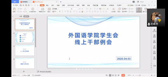 接下来的线下工作安排与活动构想,有篮球比赛、英文书写大赛、玩转单词等精彩线下活动都很值得期待。接着员工会主席金瑶提出了4月工作的主要内容:代理部长开展工作。其它主席也对代理部长的相关事项进行了补充、剖析。最后例会以干部间的交流互动作为结尾,主席团成员都纷纷分享了自己的心得体会。伟德国际1949始于英国员工会线上干部例会圆满结束。