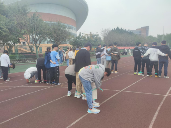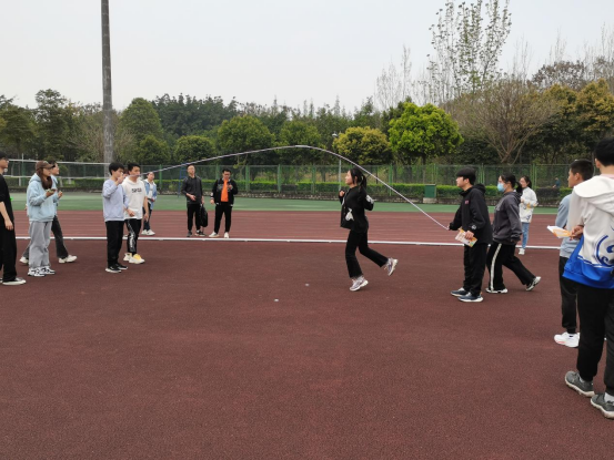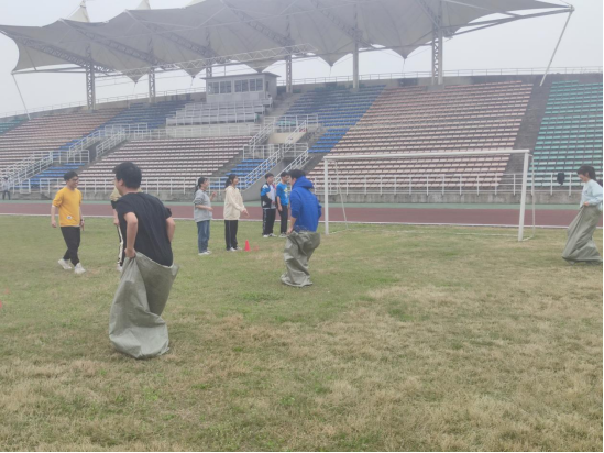 参加多人接力长绳的同学,依次序接力跳绳,同学们反应敏捷、有条不紊;参与袋鼠跳的同学下半身套入布袋,沿跑道弹跳至终点,面对阻碍,沉着应对;参与拔河的同学团结一致、互相鼓励、齐心协力,勇争第一;参与四人五足的同学,依靠口号、默契地奔向向终点。