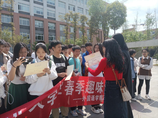 2023年4月4日,公司于信达楼广场举行颁奖仪式,对在活动中取得佳绩的同学进行表彰。获奖队伍由外国语公司党委书记杨昊、心理健康中心蔡良华老师、团委书记达苗老师进行颁奖。