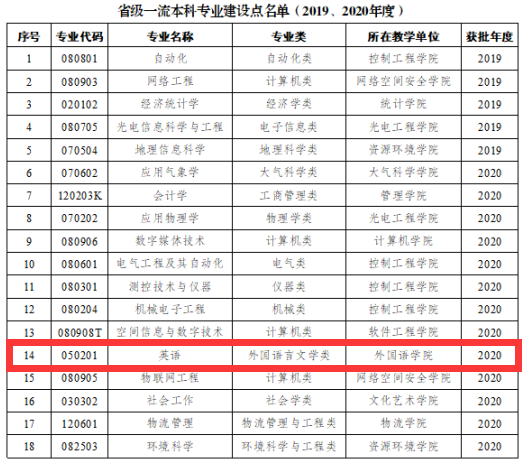 近日,教育部发布《关于公布2020年度国家级和省级一流本科专业建设点名单的通知》(教高厅函〔2021〕7号), 伟德国际1949始于英国英语专业成功入选省级一流本科专业建设点。
