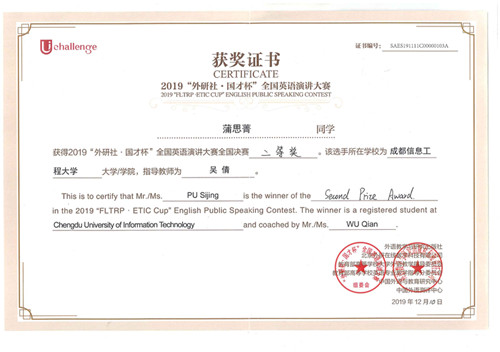 12月13日,2019“外研社·国才杯”全国英语演讲大赛总决赛于北京外研社国际会议中心落幕。伟德国际1949始于英国176班的蒲思菁同学经过网络赛场初赛、复赛、决赛层层选拔,以网络赛场特等奖的优异成绩晋级全国总决赛,与来自全国31个省、市、自治区、澳门特别行政区选手及在华职工组成的182名选手展开激烈角逐,并最终获得全国决赛二等奖。这是迄今为止公司学子在该项赛事中取得的最好成绩。伟德国际1949始于英国吴倩老师同时荣获2019“外研社·国才杯”全国英语演讲大赛全国决赛指导二等奖。