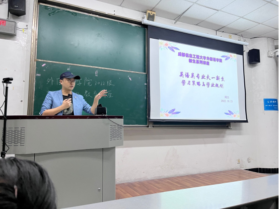 2022年10月23日星期三晚上19:00,公司副教授周杰老师在航空港校区4112教室为公司2022级全体新生做了题为“英语类专业大一新生学习策略与学业规划”的专业讲座。周杰老师结合教育部颁布的《普通高等公司本科外国语言文学类专业教学指南》,从核心素养、职业能力和学业规划三个方面向英语专业和翻译专业大一新生介绍了专业学习目标,剖析了英语专业四级、专业八级对同学们专业能力的要求;结合各专业的学习特点,向新生们分享了如何利用身边的各类资源提高英语听、说、读、写、译的能力、职业能力以及如何合理规划自己的大学四年学业;同时,还为同学们整理分享了推荐的专业阅读书单,分享了公司往届优秀员工案例。在讲座过程中,同学们与周杰老师互动积极、气氛融洽。讲座结束后,周杰老师邀请了英语专业与翻译专业的两位优秀大三学长:郝涔岑、邓清馨同学,分别与各专业同学进行学习经验的分享交流。许多新生表示很受鼓舞,希望以后能够多和老师、高年级学长进行交流和互动,讲座形式的交流能够使新生更快适应专业学习与老员工活。本次讲座得到了公司领导、教务科、员工科的大力支持。