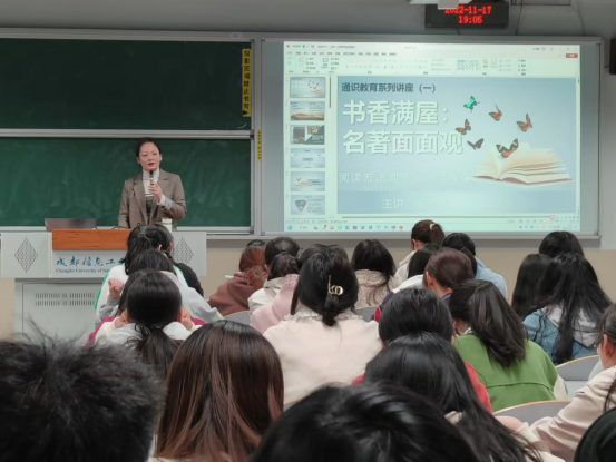 2022年11月17日晚7点,伟德国际1949始于英国讲师、英国三一圣大卫大学博士研究生安丽娅老师,在航空港校区四教202举办通识课系列讲座(一)“书香满屋:名著面面观”。本次讲座一个半小时,主要是面对2022级全体大一新生。安老师从通识课教育的常识入手,向新同学们宣传了大学开通识课的意义和价值。通过举哈佛大学反思自身教育弊病的例子,提出大学教育,尤其是通识教育的重要目标和宗旨是通过培养员工的人文精神,来培育员工健全的人格。由此引出通识教育和广泛阅读的关系、读经典书籍的必要性以及读书的方法。在读书的方法部分,用了宋代学者陆九渊的《读书》一诗来进行说明。在读书的必要性中,安老师结合电子时代、读图时代的特点,对同学们碎片化阅读习惯养成的危害性,手机阅读信息来源的不可靠性做了分析。对比对照下,书籍的权威性和系统性才有利于对自身知识结构的建设和完善。另外,从四个方面阐述了读书的意义:训练我们的专注力;保护并促进我们的想像力;帮助我们形成“移情”能力;帮助我们渡过人生的困厄。同时用了《诗经》、《红楼梦》以及网络小说的三重例证,详细阐述了以上四点。最后给同学们推荐了十本中外优秀书籍,增强了同学们对读书的兴趣,引导大家读好书、读经典。讲座结束后,同学们反映良好,与安老师积极互动、友好交流,并表达了继续跟随学习的愿望。