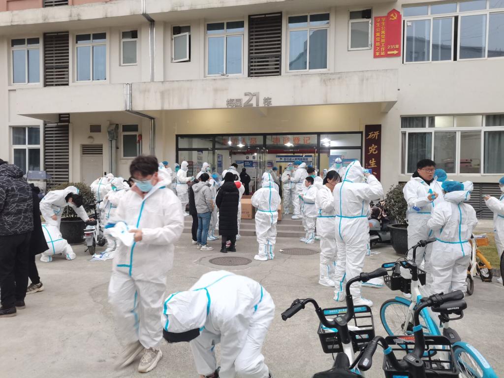 公司各年级同学积极投身于志愿服务,党员、员工干部冲锋在前。本次送餐人员最初有四位同学,李晨晨、胡祥洲、黄利、格桑扎西,之后更多同学加入到志愿者队伍中来,其中有张骁倓、陈浩宇、罗永福、陈乐森、习志霄、杨晓雨、何蓝平、谯蓉蓉、李敏慧、唐辉梅、陈垣敏、温馨、谢雨霄等,志愿者队伍愈发壮大。大家轮换值班,互相勉励,其余志愿者随时待命。一部分人员负责核酸采集工作,一部分为隔离寝室配餐。