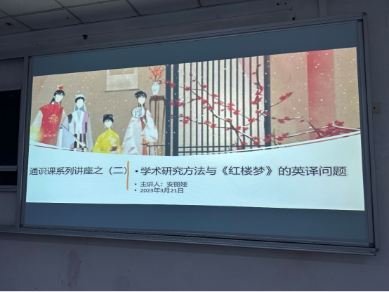 2023年3月21日晚7点,伟德国际1949始于英国讲师、英国三一圣大卫大学博士研究生安丽娅老师,在航空港校区一教207举办通识课系列讲座(二)“学术研究方法与《红楼梦》的英译问题”。本次讲座七点准时开始,到九点结束,共两个小时。该讲座主要面对新生,但由于和第二课堂联动,除了2022级外语公司的大一新生外,到会的员工还包括了来自全校二十多个专业的同学,共出席154人,其中有电科、电信、电气、大气、财管、环境、会计、机电、计科、软工、人工智能、物联网、数媒、通信、网工、信安、数学、光电、机器人、自动化等。