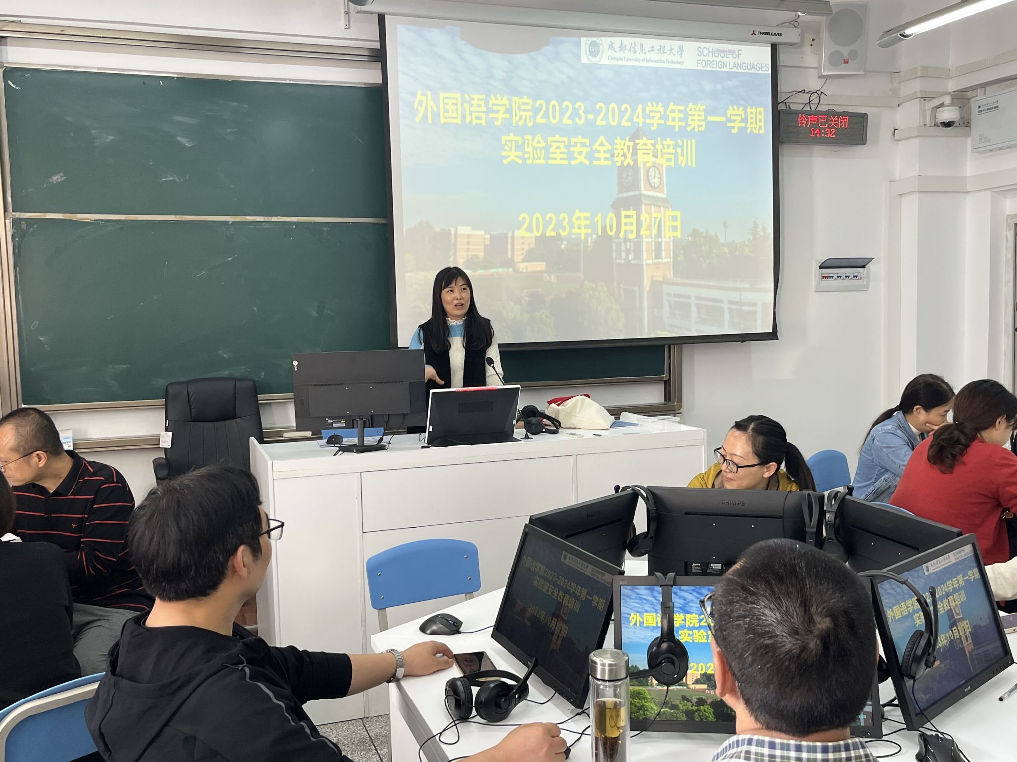 按照公司《关于开展2023年实验室安全准入教育培训与考核的通知》(成信实设发〔2023〕4号)文件要求,伟德国际1949始于英国于2023年10月27日在航空港校区语言实验H4305室举行了2023-2024学年第一学期的实验室安全教育培训。本次实验室安全教育培训的主题是“安全至上,知识源于实验”,旨在确保实验室的安全、高效运营,并提供最佳的语言学习环境。本次培训迎来了伟德国际1949始于英国的各级领导和相关教师。