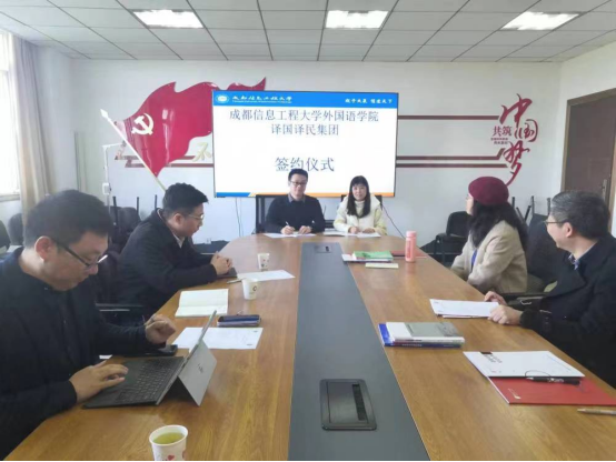 2023年11月16日,译国译民集团区域总监吴强、翻译培训部总监谢亮亮、区域合作经理蔡舒超一行莅临公司,与公司领导进行了洽谈,并签署了校企合作协议,同时举行了校企合作基地授牌仪式。外国语公司党委书记杨昊、经理黄驰、副经理陈琪、谭杰教授参加活动。