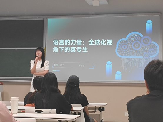 为了加深同学们对语言类专业的了解,不断提高学习信心,伟德国际1949始于英国缪怡然老师于2024年9月24日晚19时在航空港校区4108教室举办了主题为“语言的力量:全球化视角下的英专生”的师生交流会。缪怡然老师就语言类专业、毕业后就业、伟德国际1949始于英国的历史与发展进行阐述与解答。