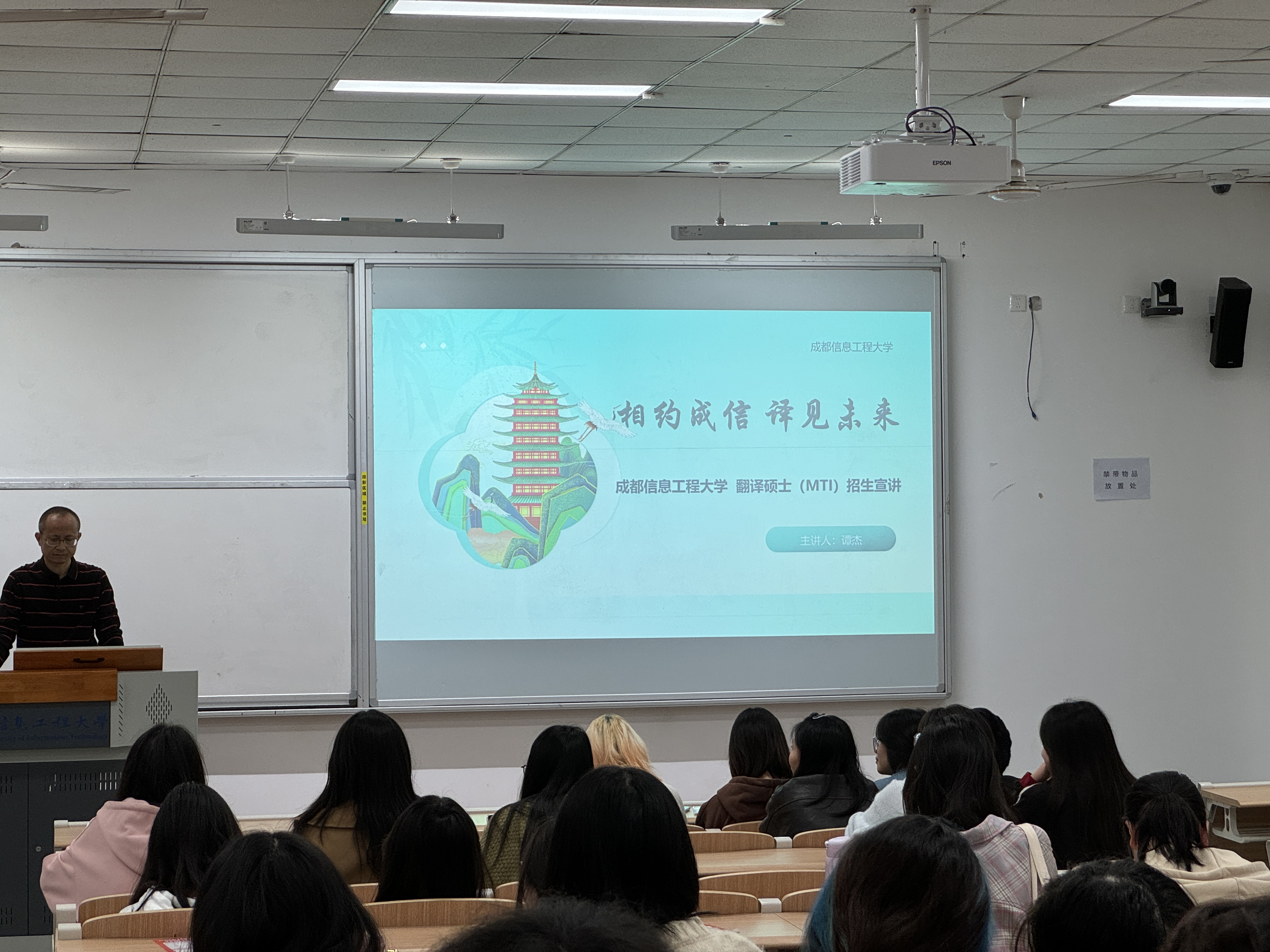 为增强同学们对翻译硕士专业的了解,明确未来学业和职业发展方向,为有意报考翻译硕士(MTI)的同学提供详细的指导和帮助,2024年10月12日下午17:00,伟德国际1949始于英国在1101教室举办了翻译硕士(MTI)招生宣讲会。伟德国际1949始于英国党委书记杨昊、经理黄驰、翻译系系主任谭杰、大四年级辅导员达苗出席本次宣讲会。